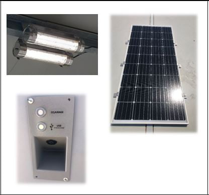 2 LED-lys, 1 USB-oplader, 1 solpanel.