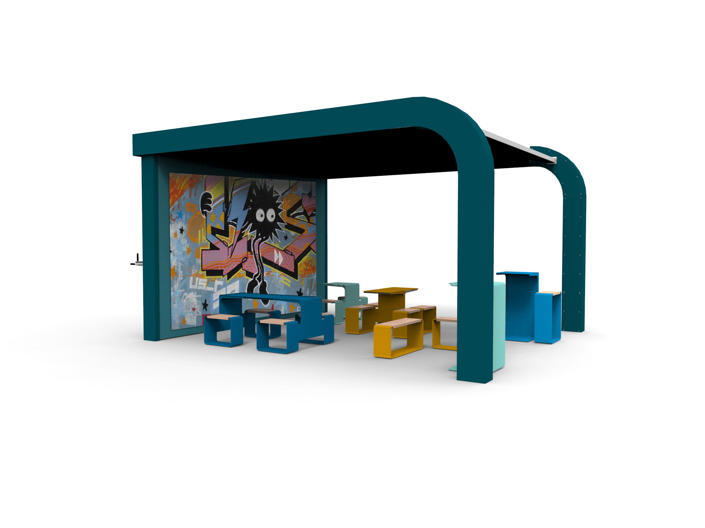 Kan indrettes under tag enten med mere træningsudstyr eller bænke og borde .