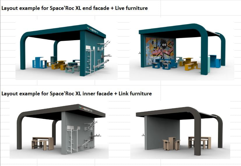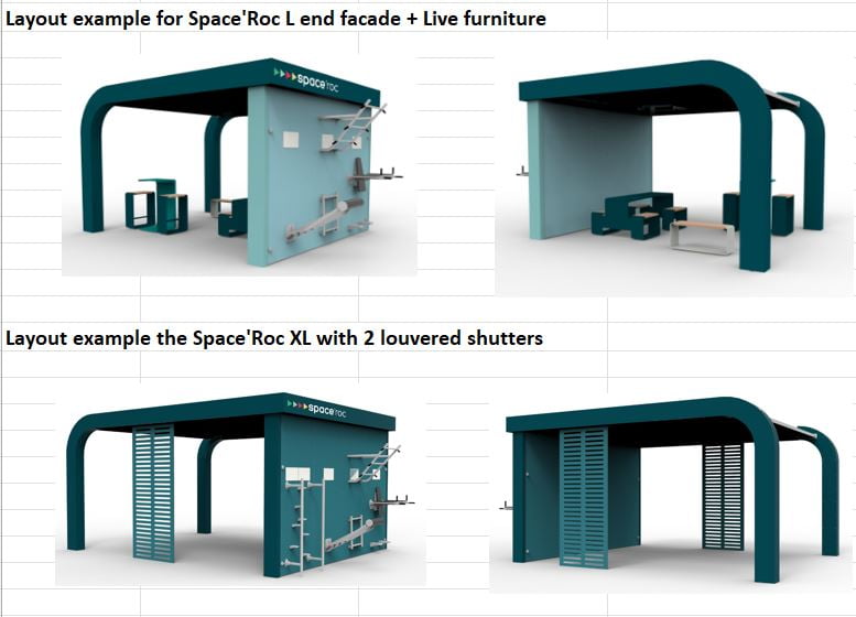 SpaceRoc kan kombineres med træning på den udvendige facade, med et sted hvor man kan slappe af, arbejde, lege og mødes under lætag og med sidelister.